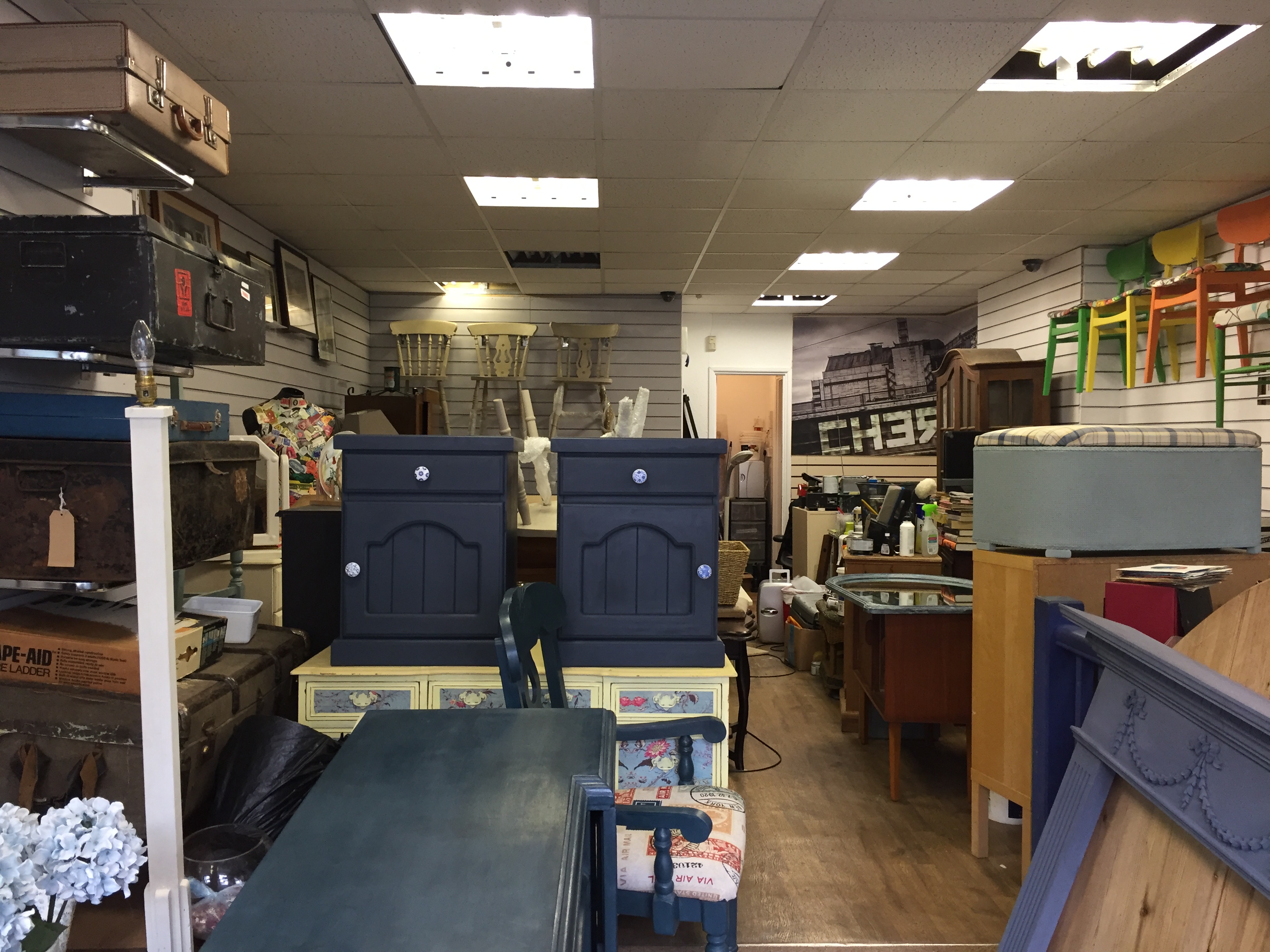 Feast your eyes on some of our recent pictures of our up-cycled stock – quirky collectables, shabby chic furniture, vintage vinyls & retro stock at our shop in North Camp.